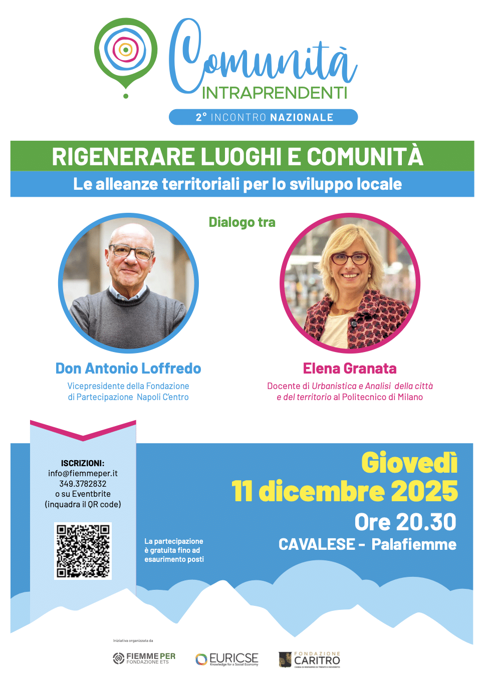 Dopo l’esordio a Cavalese nel 2024, l’11 e 12 dicembre 2025 torna il 2° Incontro nazionale delle Comunità Intraprendenti, promosso da Fiemme PER e EURICSE con il sostegno della Fondazione Caritro. Questa edizione sarà dedicata al tema “Le alleanze territoriali per la nascita e l’accompagnamento delle Comunità Intraprendenti”, con un focus sulle strategie collaborative tra comunità, istituzioni e attori privati per rispondere insieme alle sfide socio-economiche dei territori.